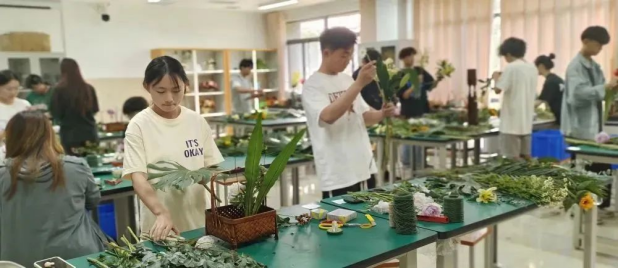根据抽签号的类型,盘花、碗花、篮花、筒花及螺旋花束在不同选手的巧手下,展现着各自的风姿。同学们在花卉的芳香和美妙的创作中体会经典的东西方花艺文化之美,提升了园林工程技术专业学生的审美情趣和人文素养。