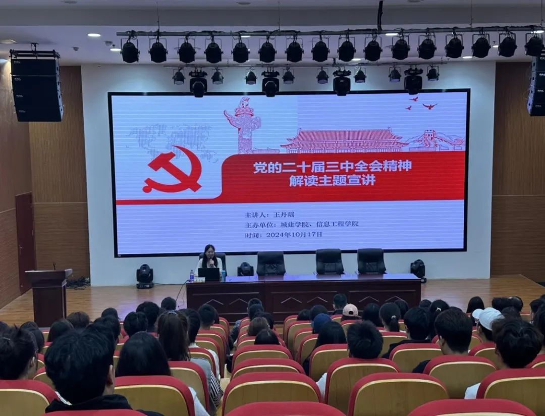 10月17日下午15:00,城建学院与信息工程学院联合举办了一场别开生面的宣讲活动。此次活动特邀马克思主义学院教学科研办主任、洛阳青年百姓宣讲团成员王丹瑶主任,为师生们带来主题为“绘就进一步全面深化改革新蓝图——党的二十届三中全会精神解读”的精彩宣讲。城建学院党总支书记马选宝、院长张晓阳和师生代表八十余人参加。