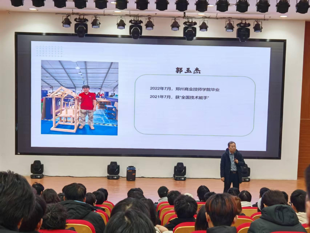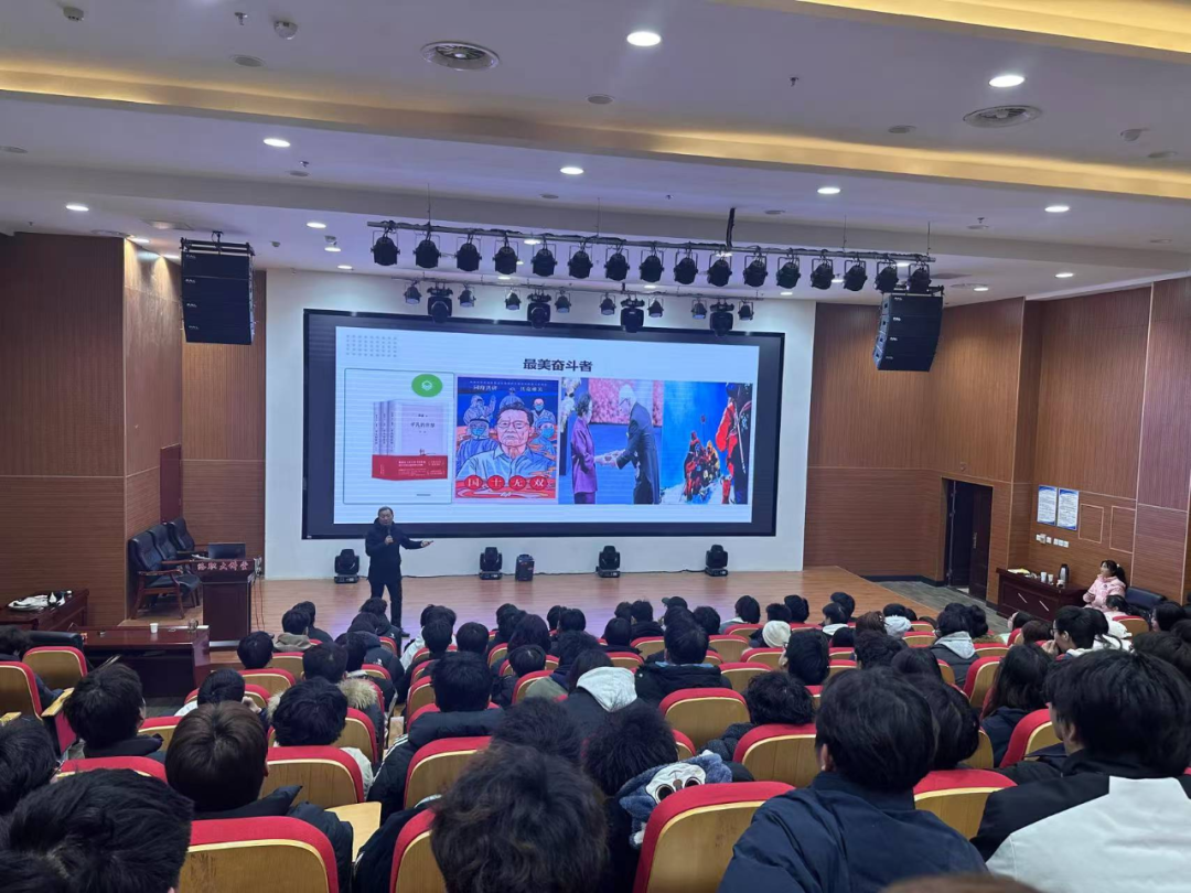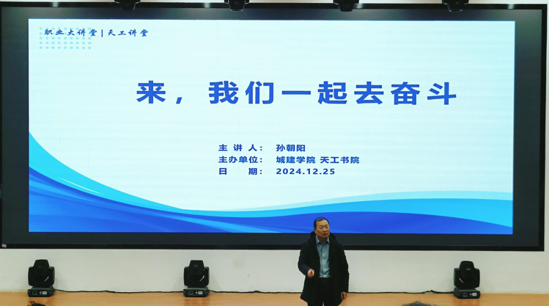 2024年12月26日晚,城建学院第四期职业大讲堂在大学生活动中心二楼心理剧场举行,由城建学院副院长孙朝阳做“来,我们一起去奋斗”专题报告,本次报告由辅导员王甜老师主持,23级学生代表参加。